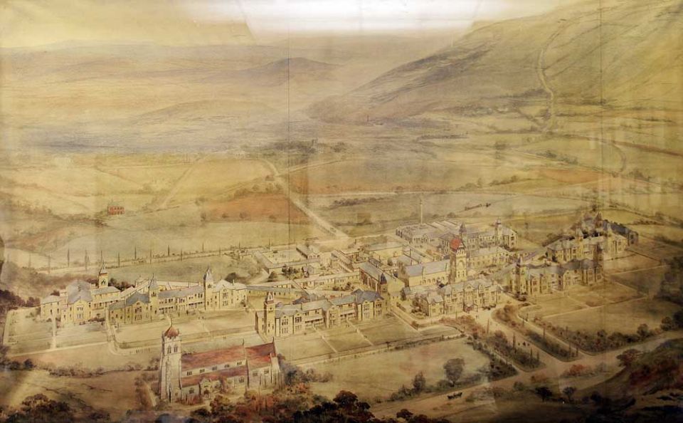 There were no trees then on Thorpe Lane, so that the asylum buildings were most impressive when viewed from White Cross, albeit the main tower with it’s tiled belfry atop looked like a grey old man wearing a red dunce’s cap. The belfry housed a single bell which marked the hours day and night. I later knew a patient who was firmly convinced that every time the bell tolled, an inmate was hanged at the Pumping Station. He would doff his cap, cross himself and mutter “Another one gone, poor soul!”